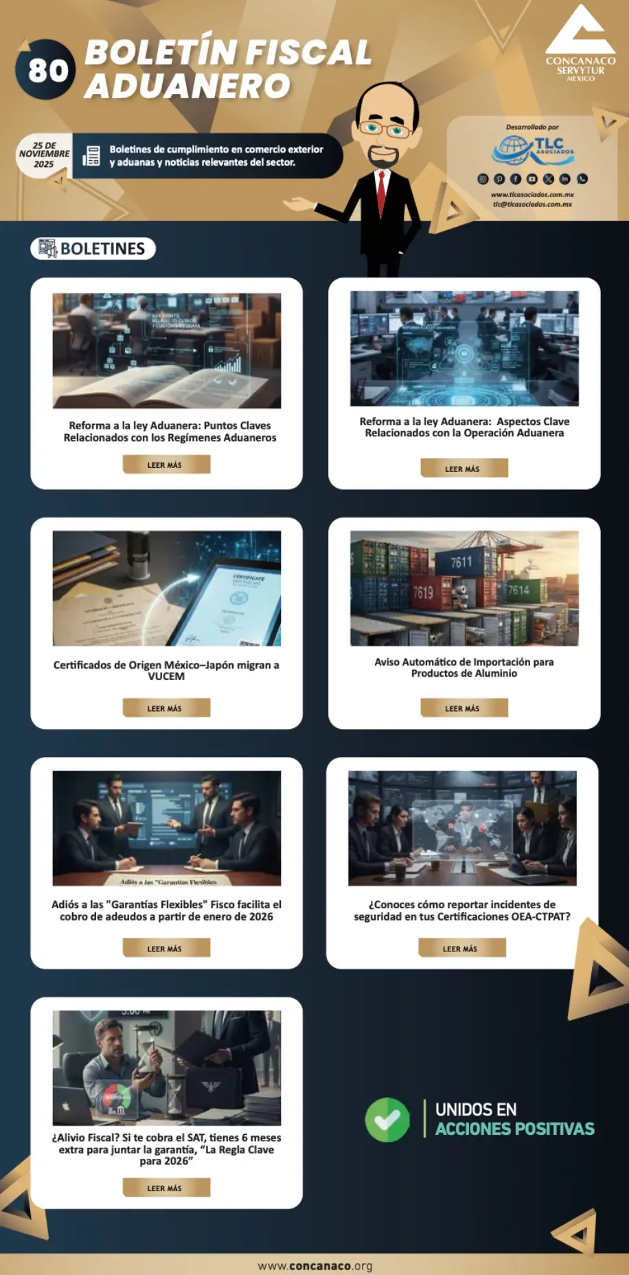 El 19 de noviembre de 2025 se dio a conocer en el DOF el “Decreto por el que se reforman, adicionan y derogan diversas disposiciones de la Ley Aduanera” para entrar en vigor el 1 de enero de 2026, salvo sus transitorios.Asesoría Aduanera.