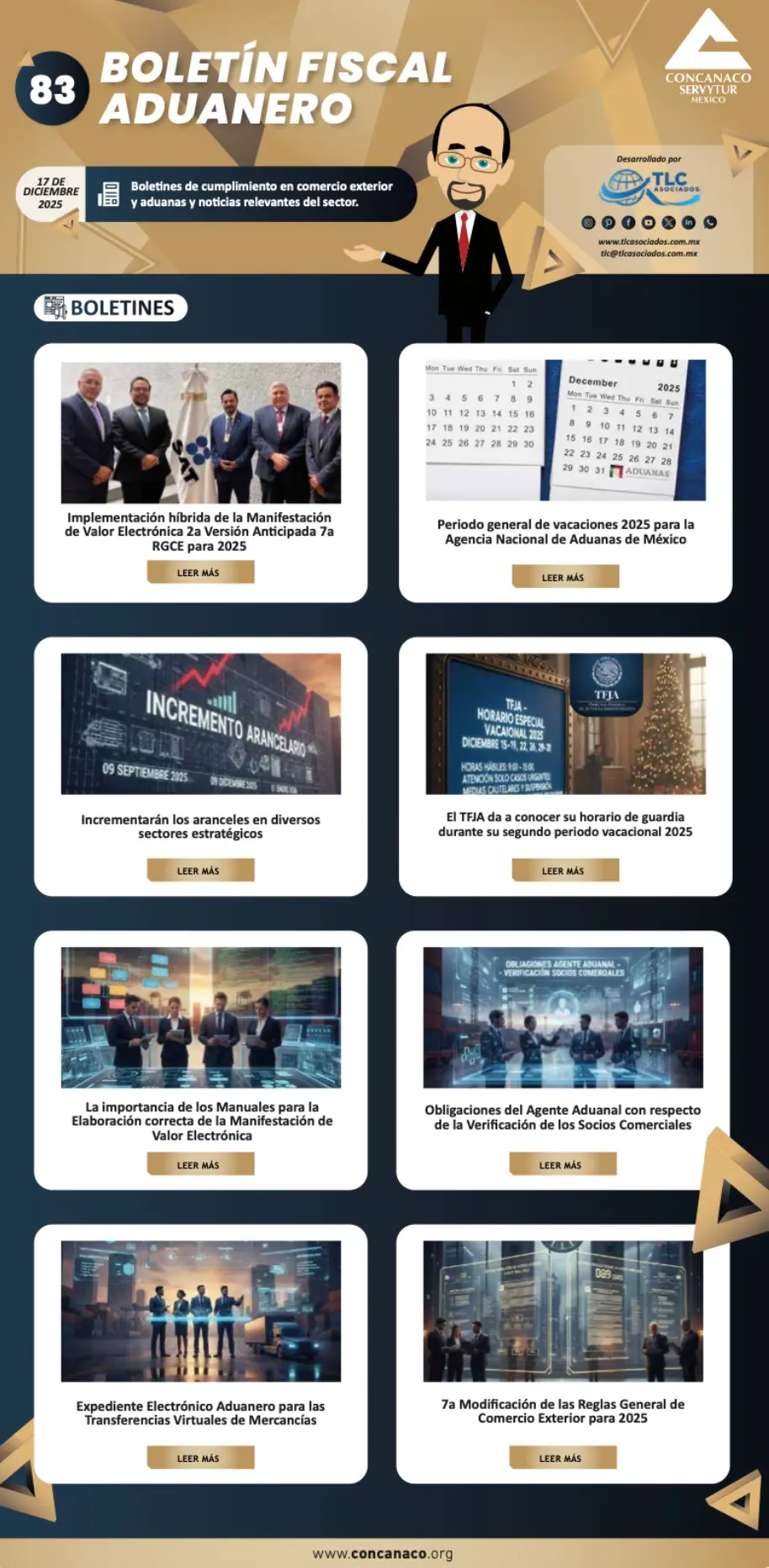 El 8 de diciembre de 2025 se dio a conocer en el Portal del SAT la “Segunda versión anticipada la Séptima Resolución de Modificaciones a las Reglas Generales de Comercio Exterior para 2025” para entrar en vigor a partir del día siguiente al de su publicación en el DOF, salvo sus transitorios.