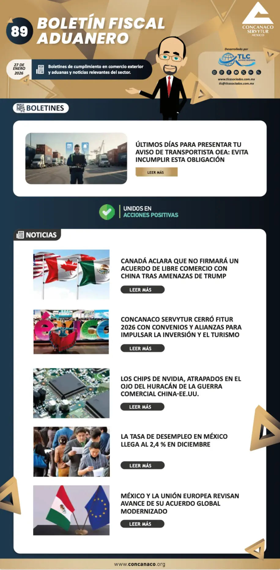 Durante el mes de enero, las empresas que cuenten con el Registro en el Esquema de Certificación de Empresas, en la modalidad de Operador Económico Autorizado (OEA), tienen la obligación de presentar el aviso de adición o revocación de empresas transportistas autorizadas para efectuar el traslado de mercancías de comercio exterior. La presentación debe realizarse conforme a lo establecido en la regla 7.2.1 de las Reglas Generales de Comercio Exterior (RGCE) vigentes, a fin de evitar incumplimientos que puedan afectar el estatus de la certificación y la pérdida de sus beneficios.