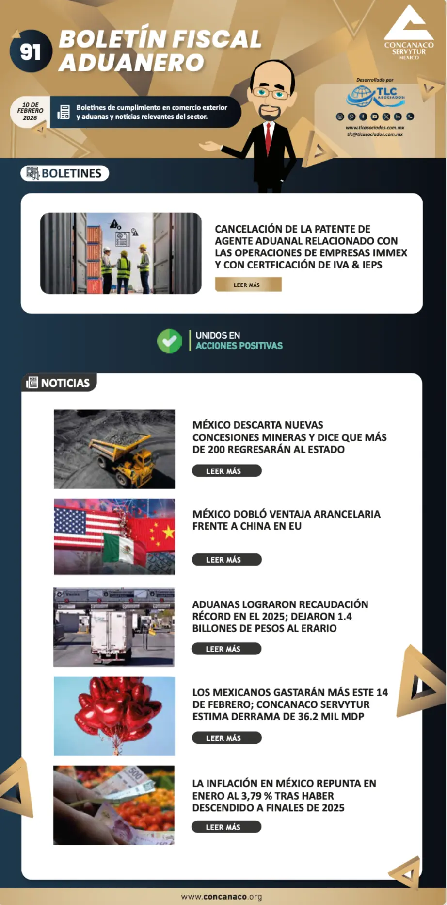 En el presente documento se realizan comentarios sobre las nuevas causales de cancelación de la patente de Agente Aduanal relacionadas con el régimen de importación temporal, las cuales fueron adicionadas mediante la publicación del “Decreto por el que se reforman, adicionan y derogan diversas disposiciones de la Ley Aduanera”, dado a conocer en el Diario Oficial de la Federación el 19 de noviembre de 2025 y que entró en vigor el 1 de enero de 2026.