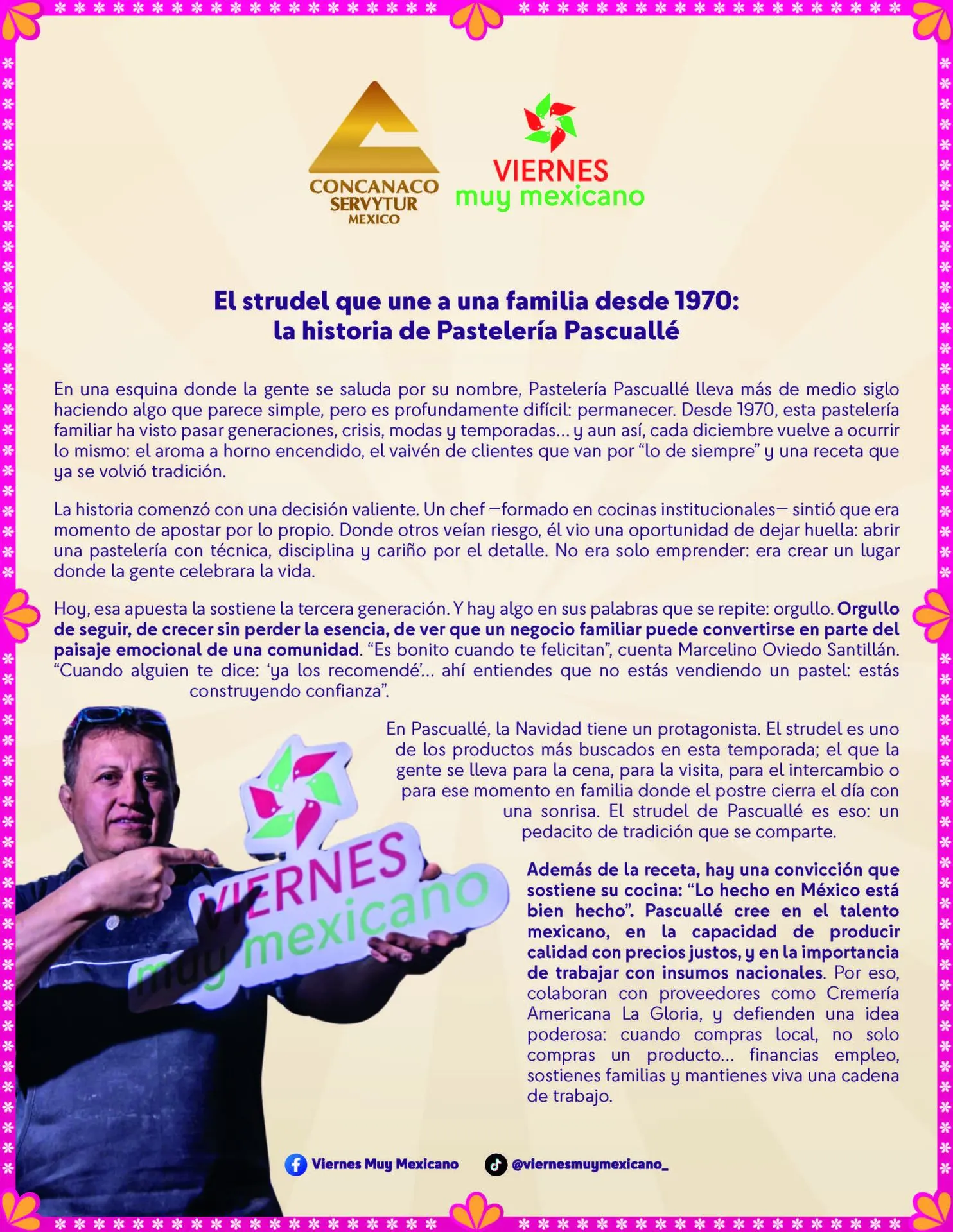Esa misma visión los llevó a sumarse a Viernes Muy Mexicano (VMM), una iniciativa que impulsa a negocios familiares y promueve el consumo en comercio establecido. Su experiencia ha sido clara: estar en VMM les ha ayudado a que más personas los conozcan, lleguen por primera vez y regresen por segunda. Y porque la economía también se activa con pequeños gestos, cada último viernes de mes aplican 10% de descuento en tienda en productos seleccionados de galletas, pasteles y cafetería.
