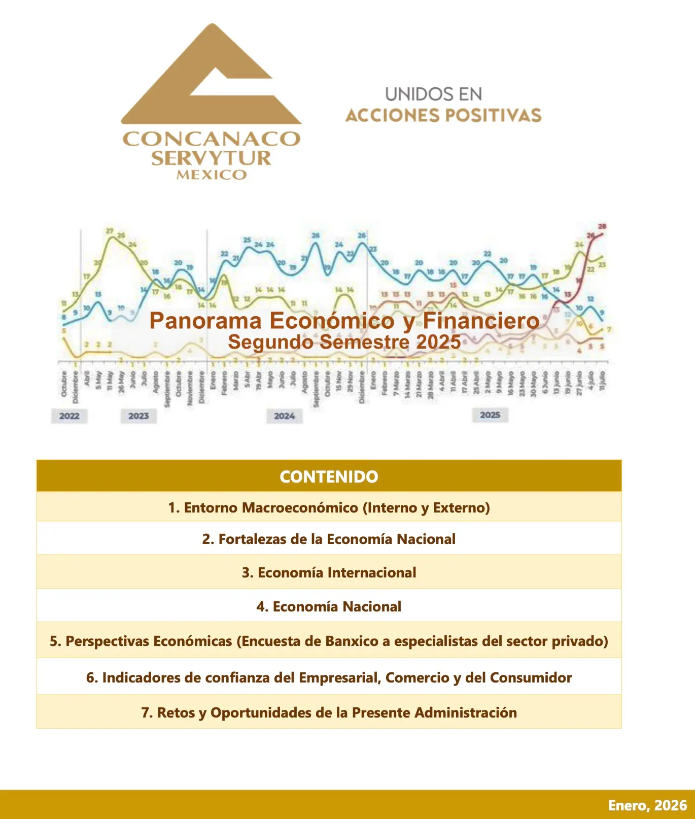 Un análisis ejecutivo del entorno macroeconómico interno y externo, el desempeño de la economía nacional e internacional, expectativas de especialistas (Encuesta Banxico), confianza empresarial/consumidor y principales retos y oportunidades para 2026.