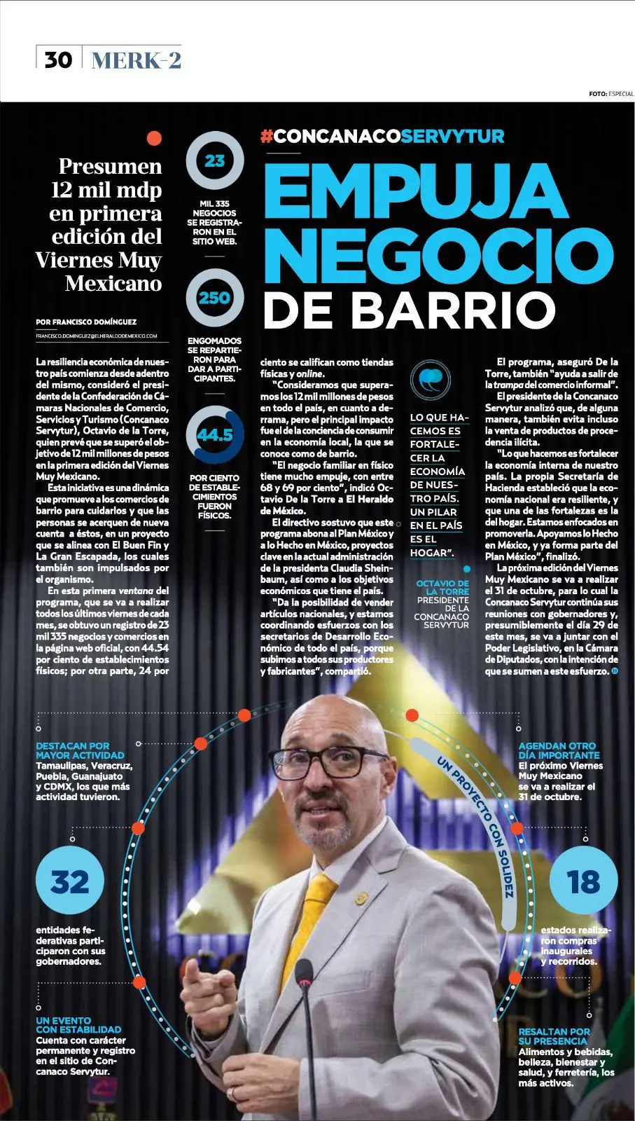 La resiliencia económica de nuestro país comienza desde adentro del mismo, consideró el presidente de la Confederación de Cámaras Nacionales de Comercio, Servicios y Turismo (Concanaco Servytur), Octavio de la Torre, quien prevé que se superó el objetivo de 12 mil millones de pesos en la primera edición del Viernes Muy Mexicano.