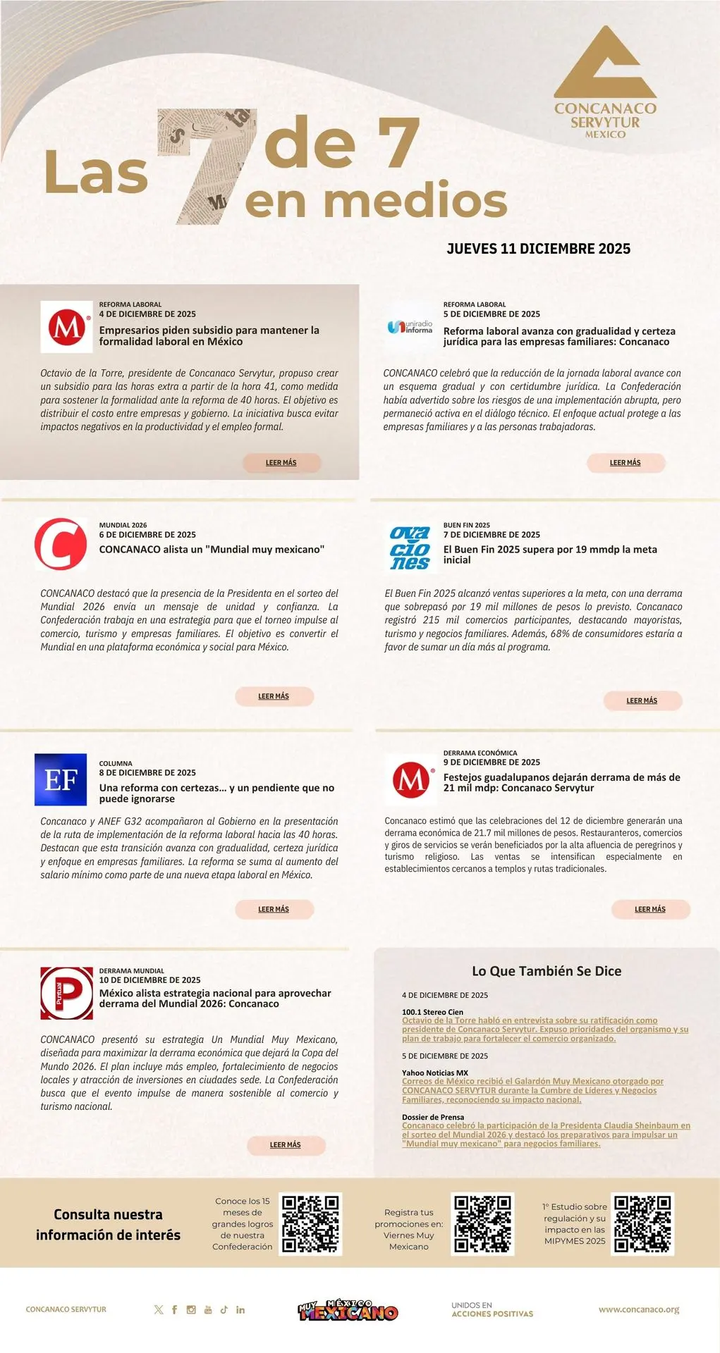 CONCANACO celebró que la reducción de la jornada laboral avance con un esquema gradual y con certidumbre jurídica. La Confederación había advertido sobre los riesgos de una implementación abrupta, pero permaneció activa en el diálogo técnico. El enfoque actual protege a las empresas familiares y a las personas trabajadoras.