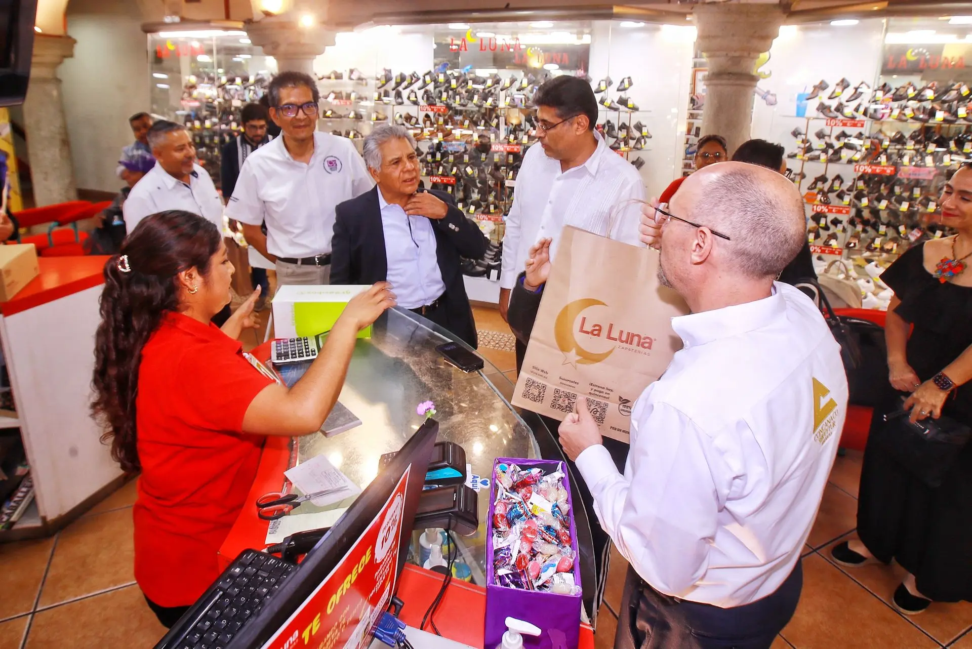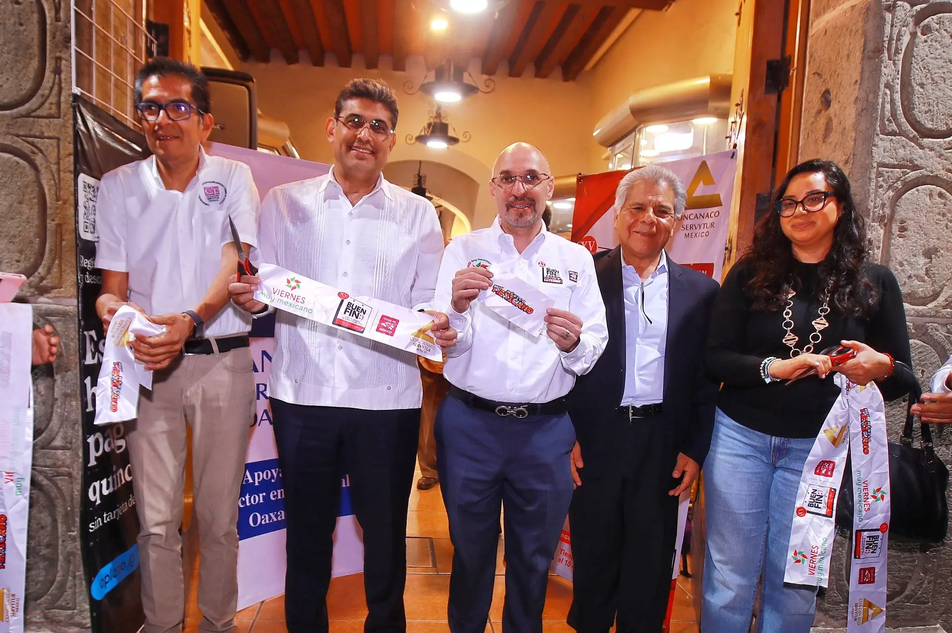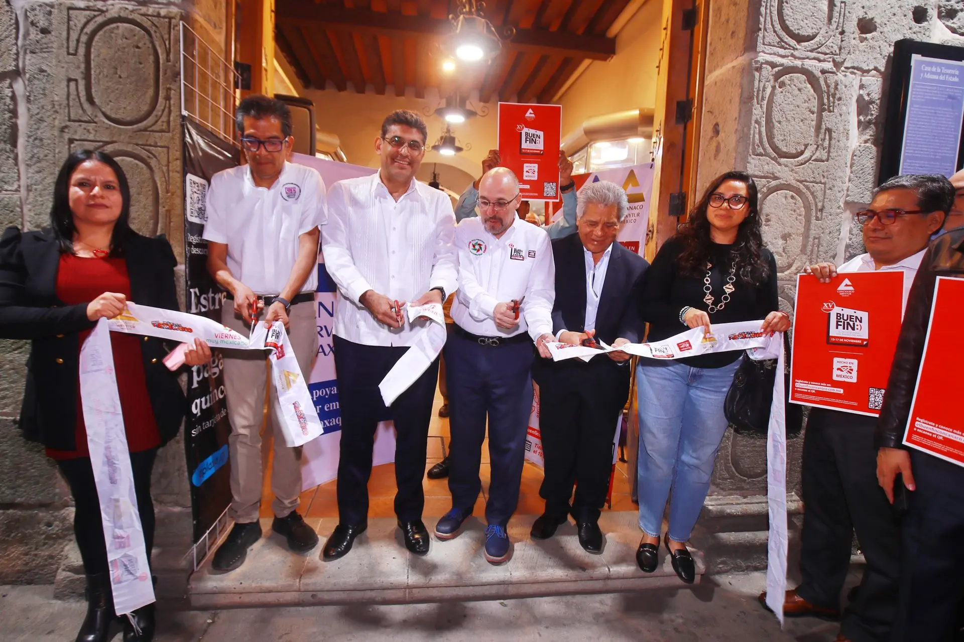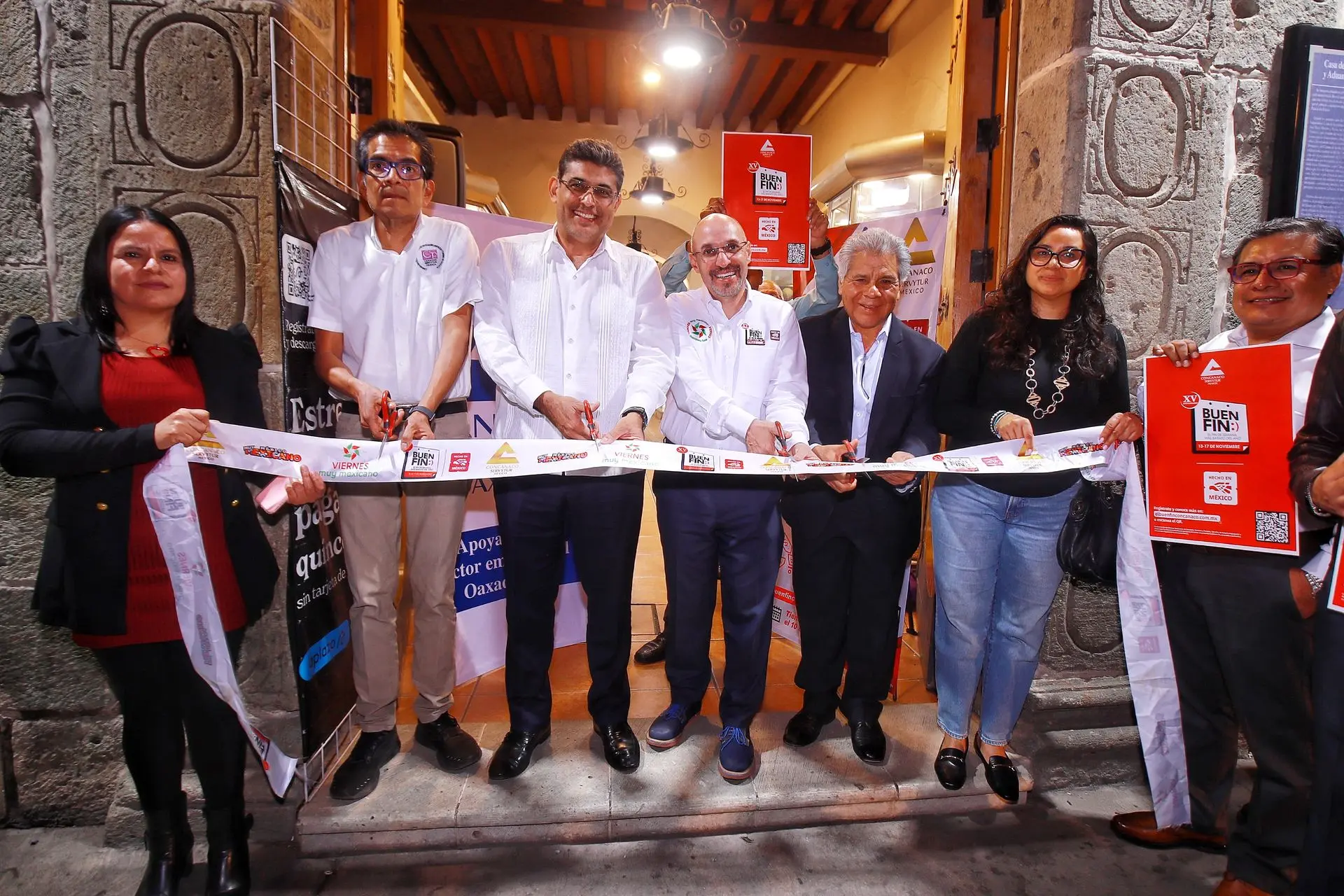 El presidente de la CONCANACO SERVYTUR, Dr. Octavio de la Torre de Stéffano, encabezó la primera compra del #BuenFin en Oaxaca, acompañado del secretario de Economía Raúl Ruiz Robles, el presidente de Canaco Oaxaca Ernesto Gutiérrez Jiménez y el presidente de Canacope Servytur Oaxaca Iván García Hernández.