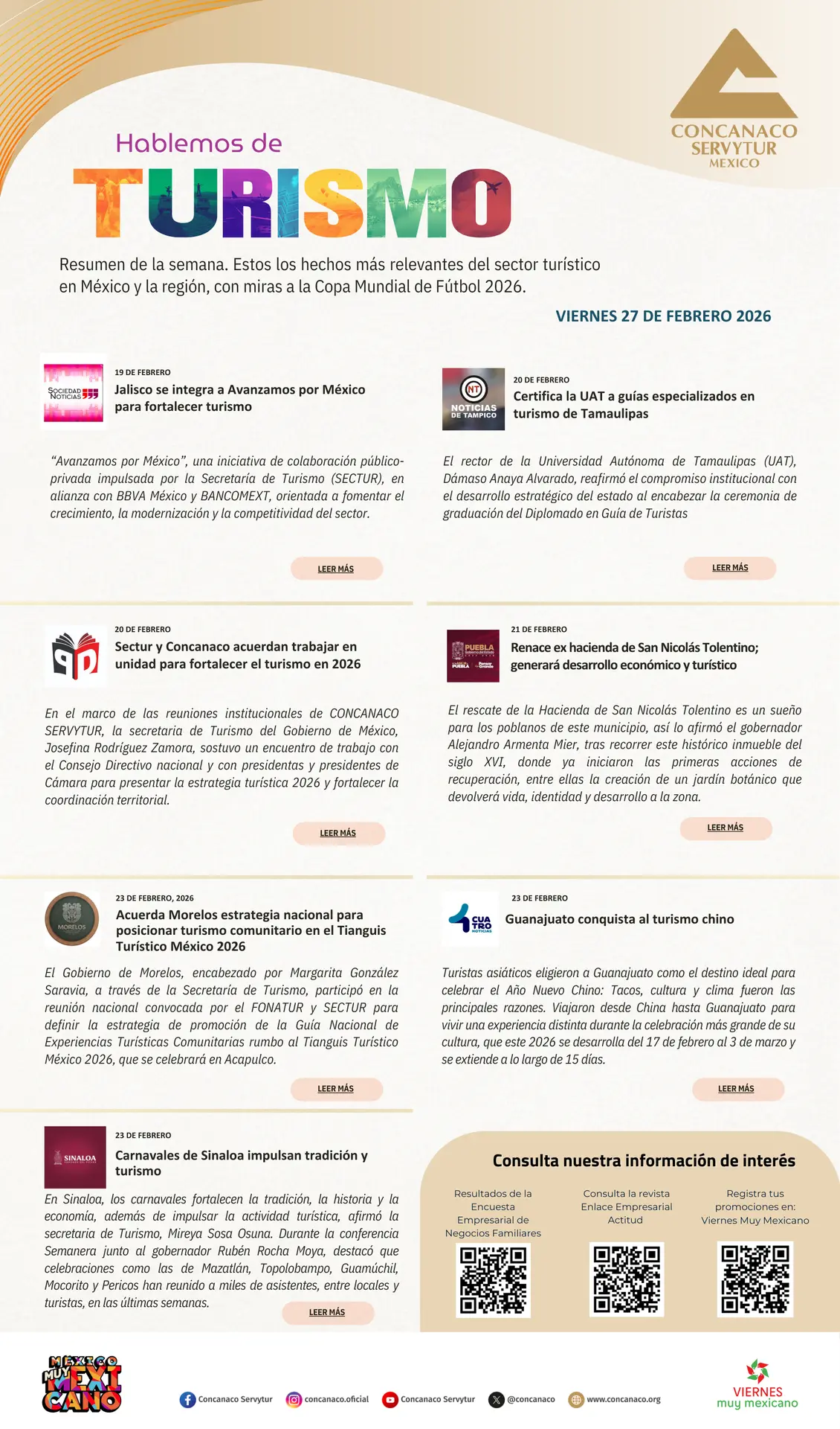 En el marco de las reuniones institucionales mensuales de la Confederación de Cámaras Nacionales de Comercio, Servicios y Turismo (CONCANACO SERVYTUR), la secretaria de Turismo del Gobierno de México, Josefina Rodríguez Zamora, sostuvo un encuentro de trabajo con el Consejo Directivo nacional y con presidentas y presidentes de Cámara para presentar la estrategia turística 2026 y fortalecer la coordinación territorial.