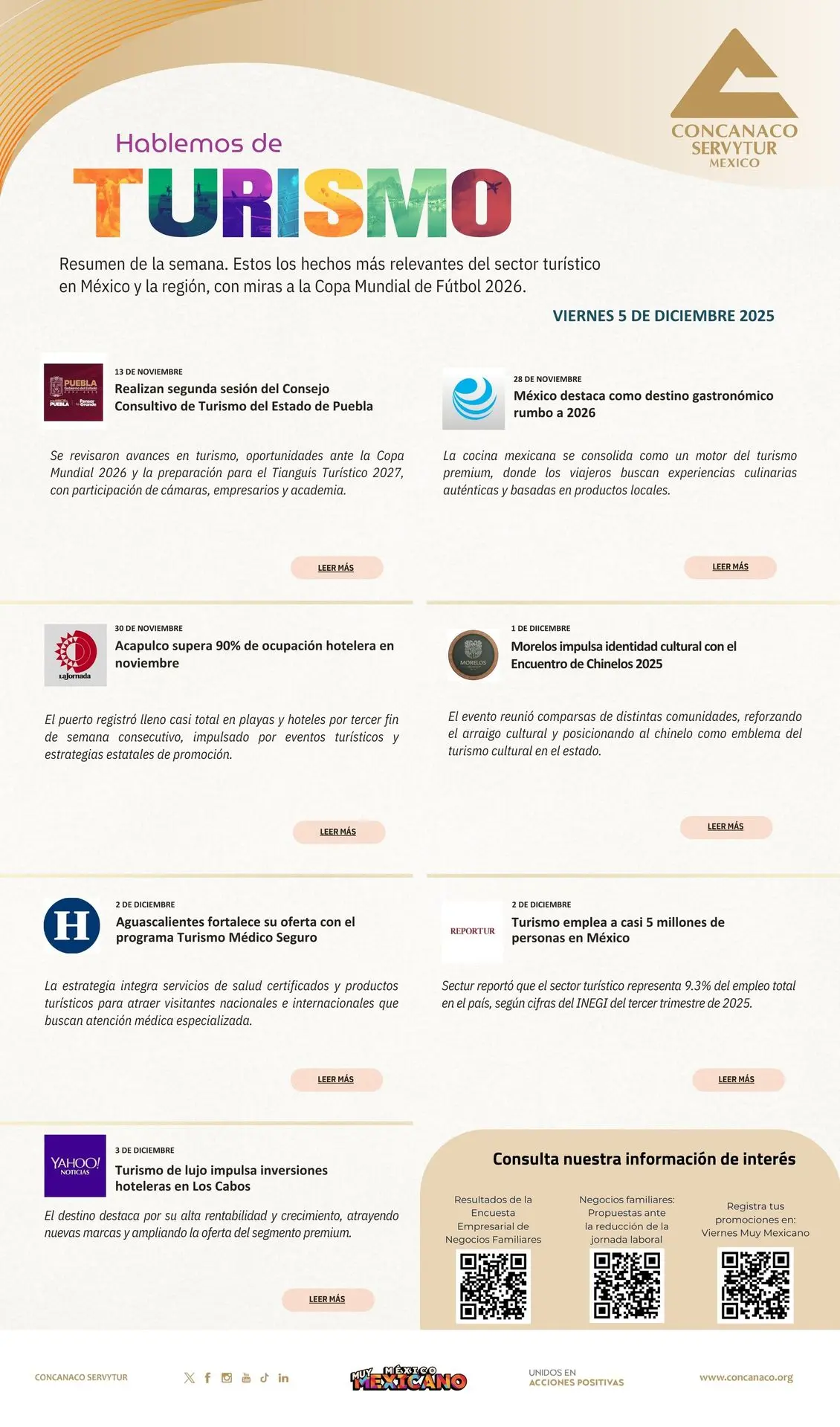 Sectur reportó que el sector turístico representa 9.3% del empleo total en el país, según cifras del INEGI del tercer trimestre de 2025.