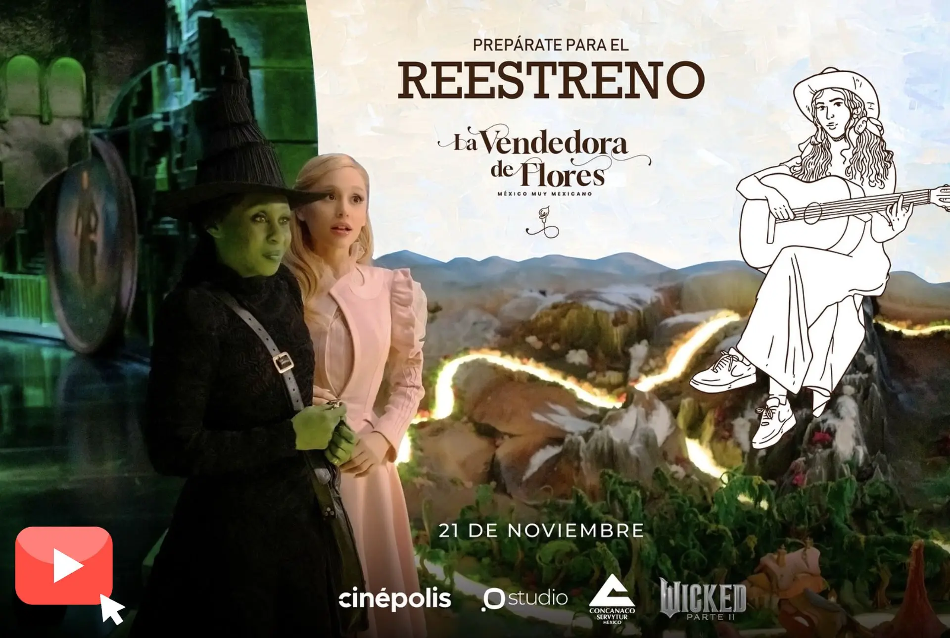 La Confederación de Cámaras Nacionales de Comercio, Servicios y Turismo (CONCANACO SERVYTUR México) anuncia el regreso a la gran pantalla de su cortometraje “La Vendedora de Flores”, que será exhibido a nivel nacional en Cinépolis durante una semana, previo a funciones seleccionadas del estreno de Wicked: Parte 2.